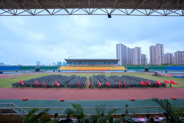 10月21日上午,我校2024级新生军训汇报表演暨总结表彰大会在东校区体育场举行。校党委书记许慧霞,校党委副书记、军训旅政委丁敢真,副校长舒志定,承训部队领导、军训旅旅长高杰中校出席大会。各学院党委(总支)书记、副书记,军训领导小组成员、军训教官,全体教导员、2024级全体参训新生参会。大会由丁敢真主持。